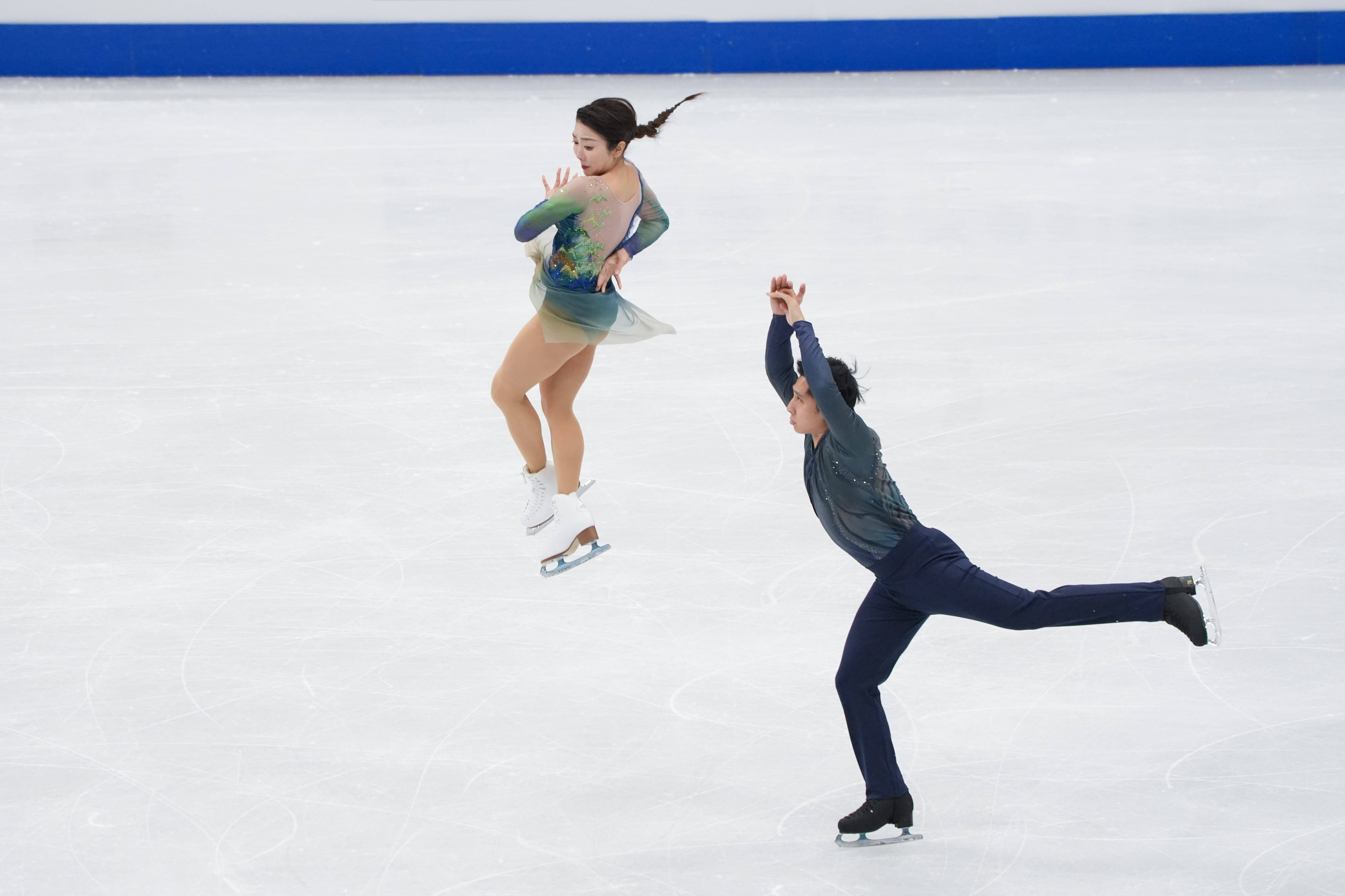 1月24日,隋文静(上)/韩聪在双人滑自由滑比赛中。新华社记者 谢晗 摄隋文静表示:“这次是遇到了一些伤病,脚上的骨挫伤导致了代偿,现在在一个急性期……到冬奥会还有小半个月的时间,对未来我们还是充满信心的,我相信在米兰我们能够调整过来。”